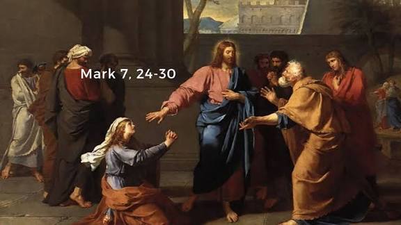 ధ్యానమునకు ఉపకరించు వాక్యములు: "యేసు, బిడ్డలు మొదట తృప్తి చెందవలెను. బిడ్డల రొట్టెను తీసి కుక్క పిల్లలకు వేయుట తగదు అని పలికెను. అప్పుడు ఆమె, అది నిజమే స్వామీ! కాని, బిడ్డలు పడవేయు రొట్టె ముక్కలను భోజనపు బల్లక్రింద ఉన్న కుక్క పిల్లలును తినునుగదా! అని బదులు పలికెను. అందుకు యేసు, నీ సమాధానము మెచ్చదగినది అని చెప్పెను" (మార్కు 7:27-29).