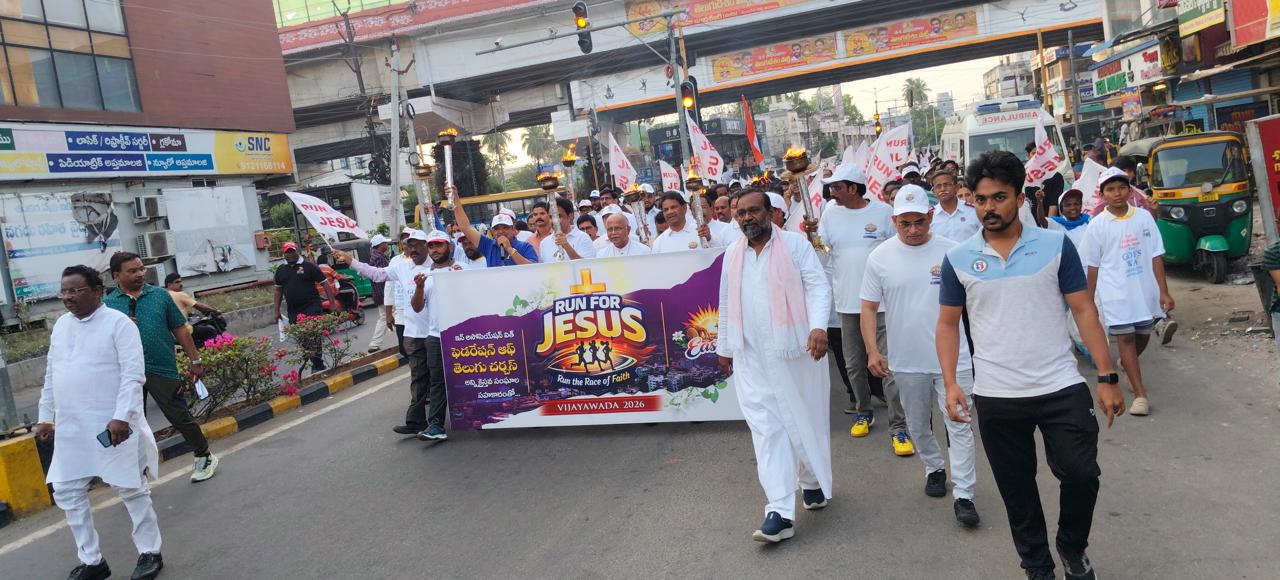 పరుగెత్తి.. ఎలుగెత్తి చాటుదాం.. అంటూ క్రైస్తవ సోదరులు ఏప్రిల్ 4 శనివారం నాడు నగరవ్యాప్తంగా రన్ ఫర్ జీసస్ కార్యక్రమాన్ని అట్టహాసంగా నిర్వహించారు.2026 ఏండ్ల క్రితం శుభ శుక్రవారం నాడు సిలువలో మరణించిన ఏసుక్రీస్తు మరణాన్ని జయించి మూడో రోజు ఆదివారం తెల్లవారుజామున లేచి తనను ప్రేమించిన వారికి, తన శిష్యులకు కనిపించి వారితో మాట్లాడారని క్రైస్తవులు బలంగా విశ్వసిస్తారు.అయితే క్రీస్తు సమాధిని గెలిచి బయటకు వచ్చాడని, ఒకరికి ఒకరు చెప్పుకోవడానికి క్రైస్తవులు సంప్రదాయం ప్రకారం రన్ ఫర్ జీసస్ కార్యక్రమాన్ని నిర్వహిస్తుంటారు.భారతదేశంలోని 800 ప్రాంతాలలో ఈ కార్యక్రమం అద్భుతంగా నిర్వహించబడింది.ముఖ్యంగా ఆంధ్రప్రదేశ్, తెలంగాణ, ఒడిశా, ఛత్తీస్గఢ్ మరియు కర్ణాటక రాష్ట్రాల ఎన్నో ప్రాంతాల్లో ఈ రన్ ఫర్ జీసస్ అత్యంత ఉత్సాహంతో జరిగింది.